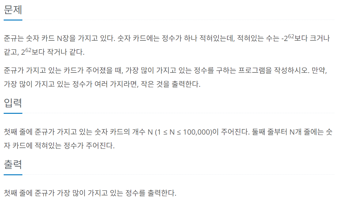 딕셔너리를 사용하는 문제로 카드번호를 키로 저장하고 카드가 들어오면 value를 1씩 증가해 저장