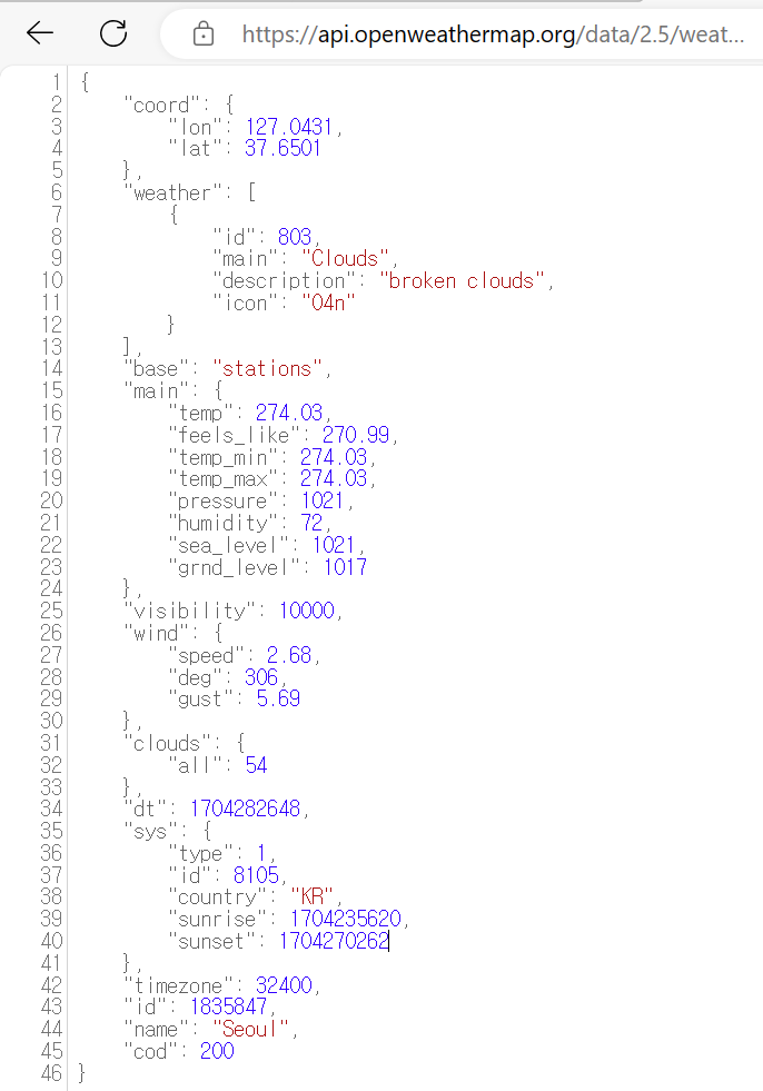 latitude, longitude, API Key와 함께 API 호출
