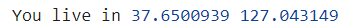 console.log("You live in", lat, lng);